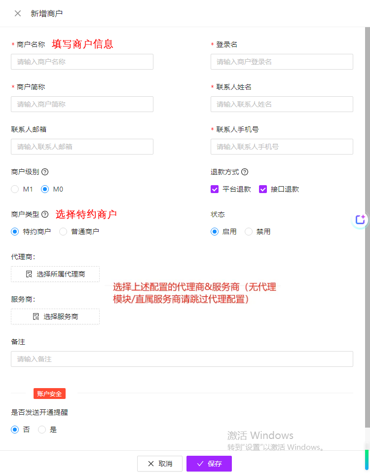 新建商户/自注册商户