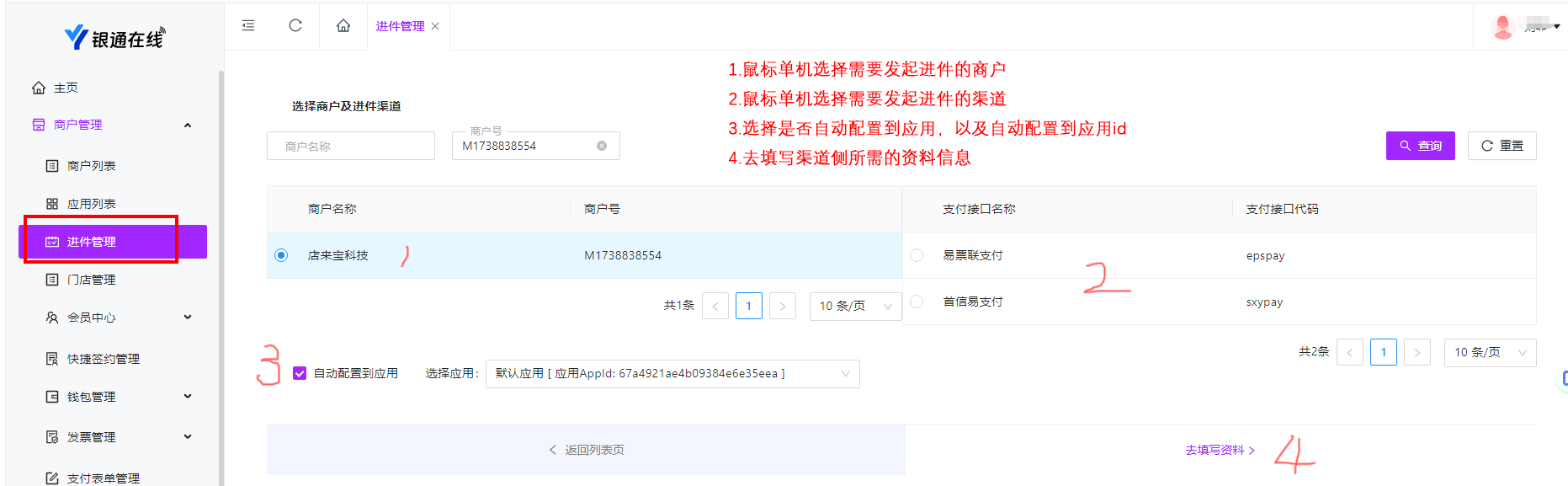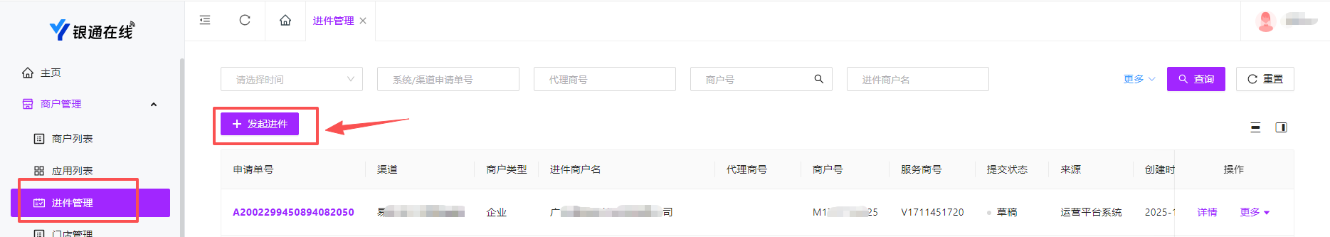 ● 到商户管理页下发起商户进件