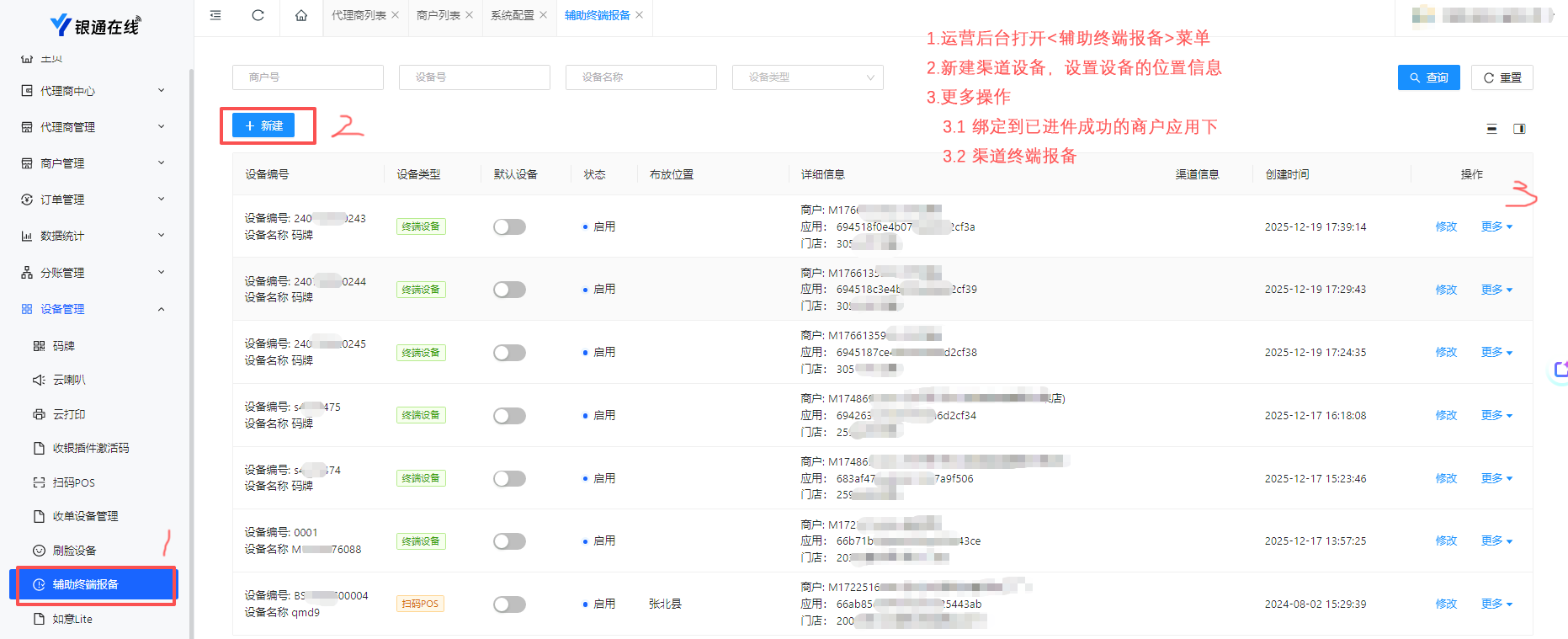 ● 打开商户列表-点击新建